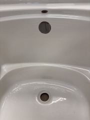 There is a chip in the corner opposite the drains.
